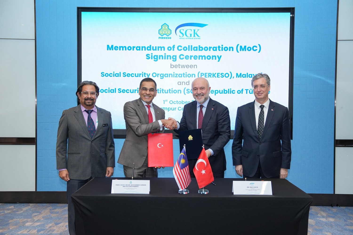 Türkiye Cumhuriyeti Sosyal Güvenlik Kurumu (SGK) ile Malezya Sosyal Güvenlik Kurumu (PERKESO) arasında sosyal güvenlik alanında iş birliğini artırmayı amaçlayan mutabakat zaptı imzalandı.